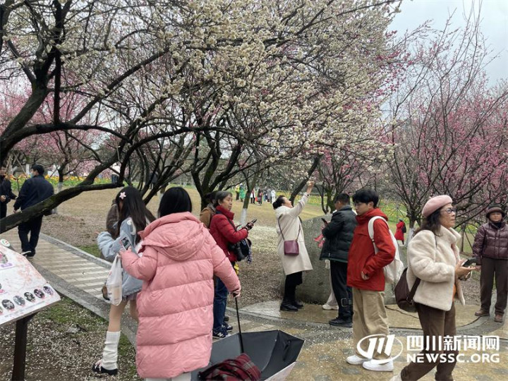 据了解,浣花溪公园多年来致力于梅花景观打造,从最初的少量种植到如今拥有涵盖宫粉梅、朱砂梅、绿萼梅等多个品种的百余株梅树,逐渐形成了富有诗意的赏梅胜地,吸引着市民游客纷至沓来。